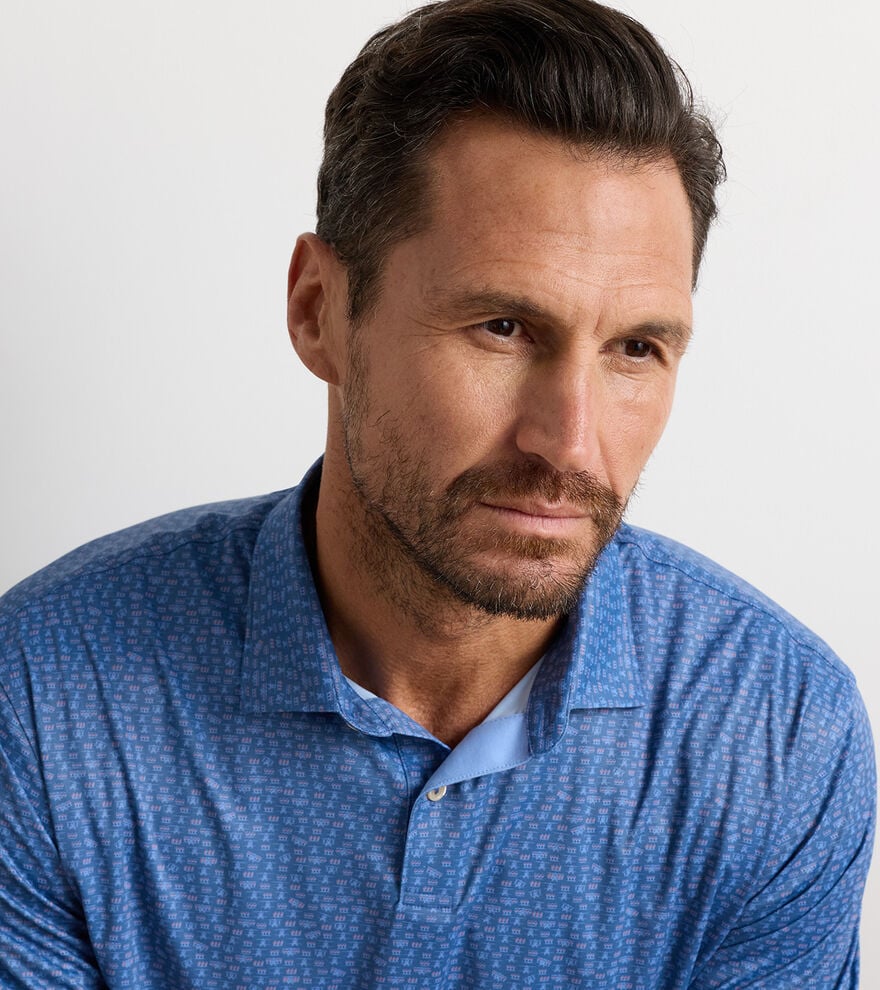 Seriously soft and especially light, our trusted warm-weather polos weigh half as much as your favourite T-shirt with four-way stretch, wicking and UPF 50+ sun protection. This shirt features a custom-designed print for added style.