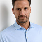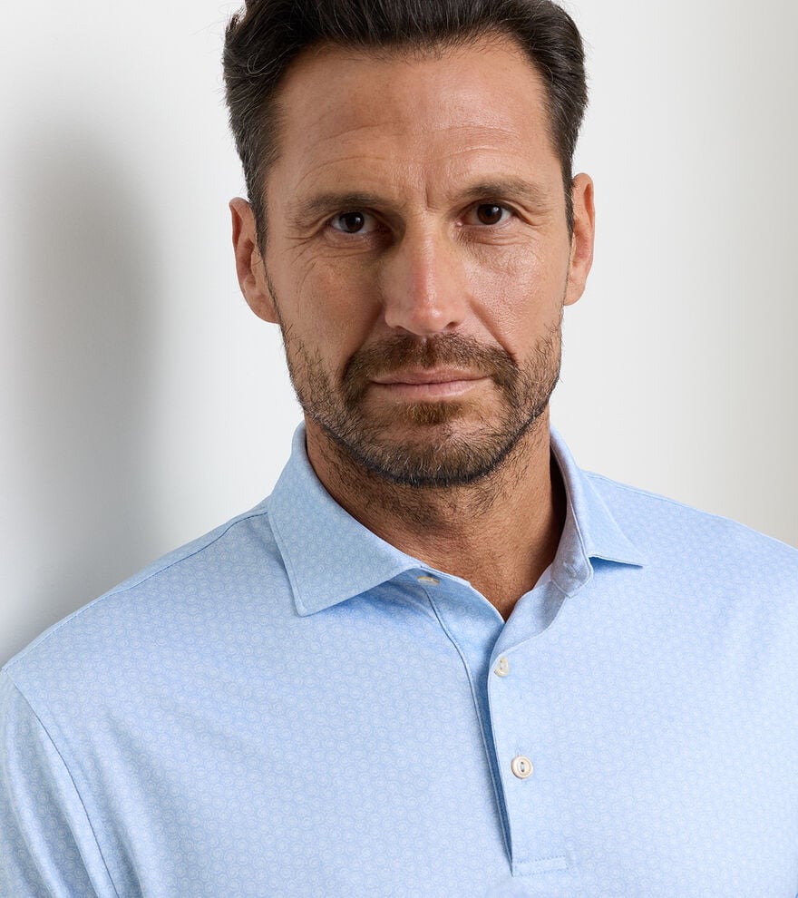 Our Summer Comfort jersey polos are gold standards for softness and exceptional performance. These are packed with four-way stretch, wicking and UPF 50+ protection in our signature fabrication. This shirt features a custom-designed nautilus print for added style. Finished with a spread collar and three-button placket.