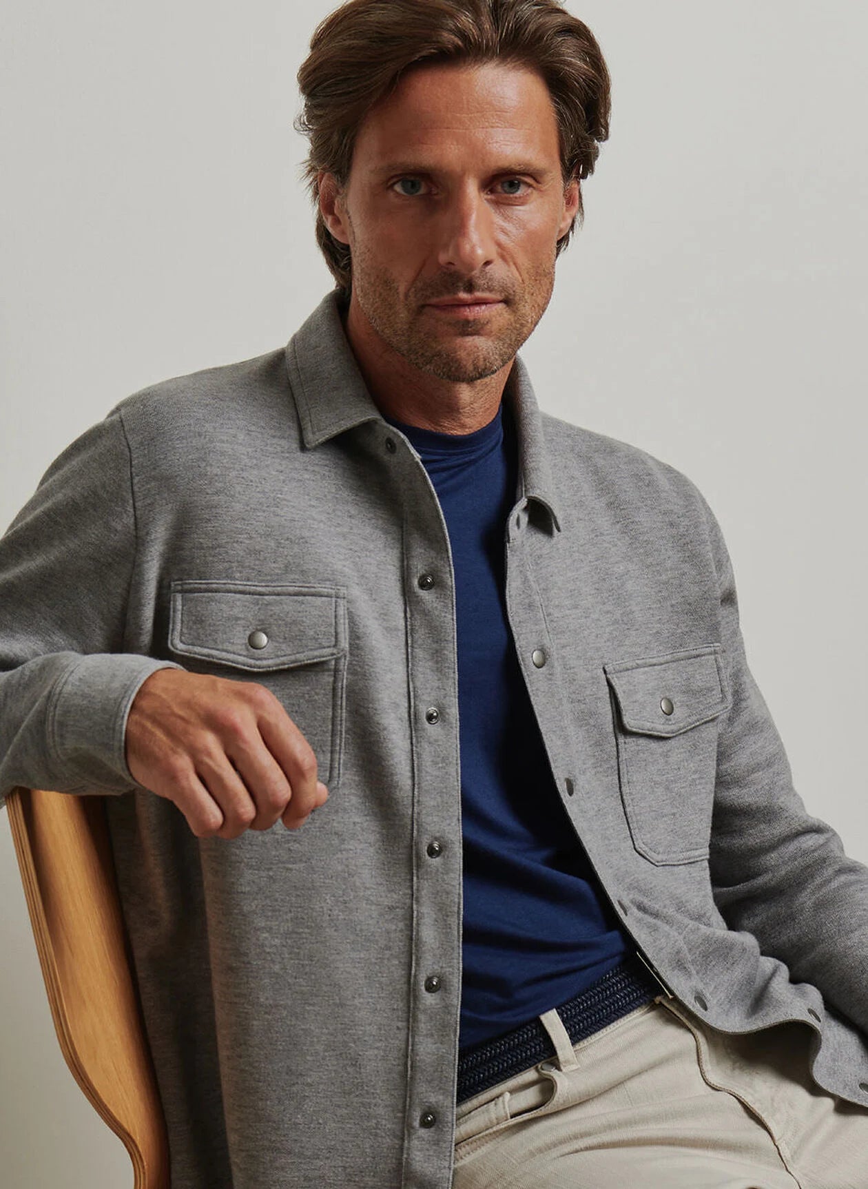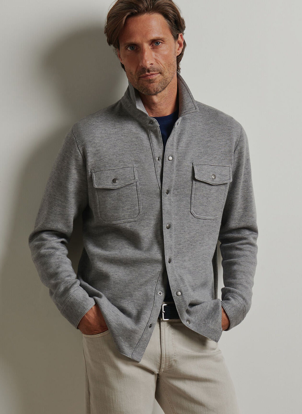 Combining the look of a snap shirt and the feel of your favourite sweater, this new style is shaped by a soft yet substantial wool-cotton blend. A versatile, unique layer for casual days.