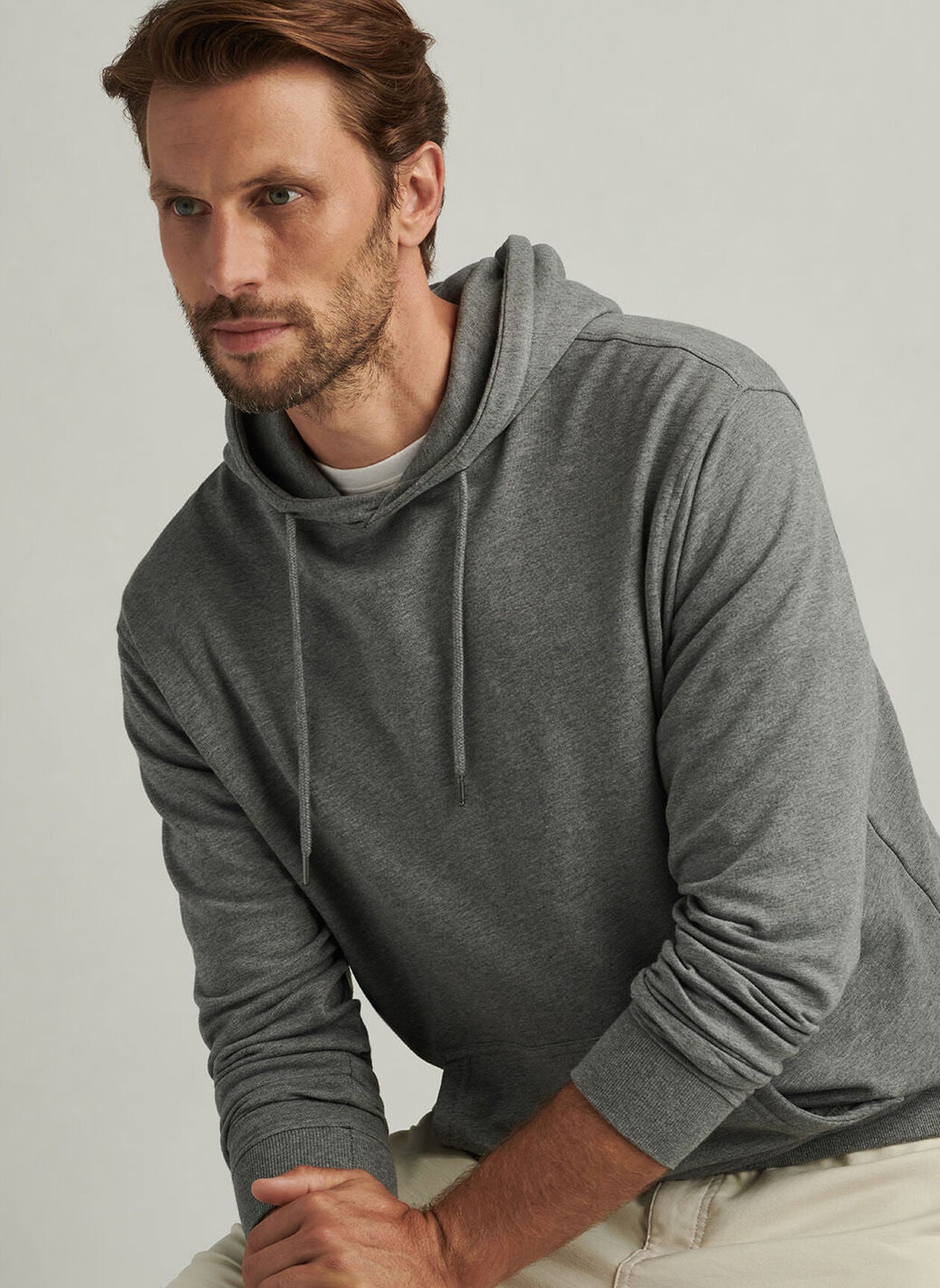 Designed to echo the familiar feel of a well-worn favourite, this hoodie is knit from our super-soft cotton-modal blend with a hint of stretch for all-day comfort. It features a fleeced interior and is finished with a front pouch pocket and banded cuffs and hem.