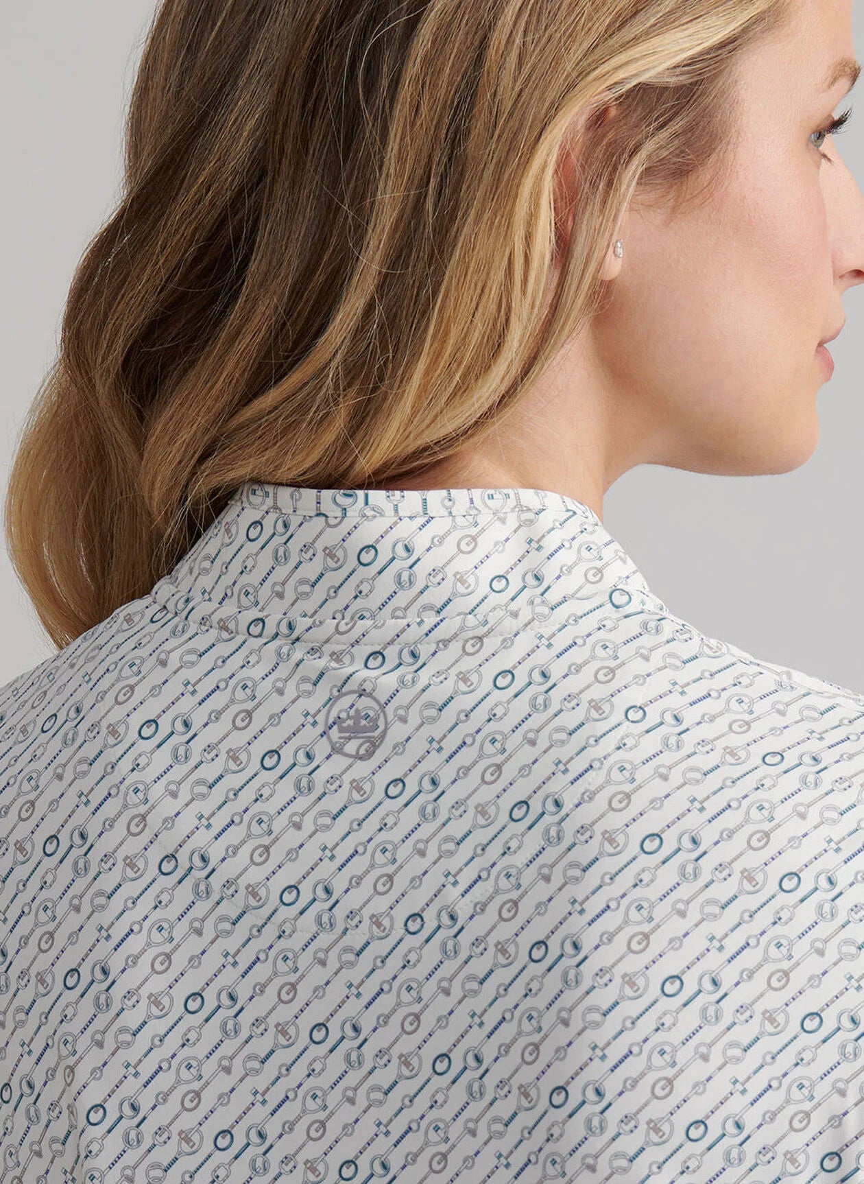 Our popular lightweight base layer is the perfect option for outdoor activities. It’s designed with a quarter-zip front and flattering curved collar and hem. High-gauge stretch jersey fabric is lightweight, soft and airy, with UPF 50+ sun protection. This shirt features a custom-designed print inspired by racquet sports.
