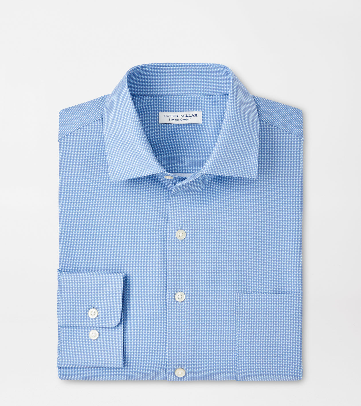 This sophisticated essential conveys the classic look of a poplin shirt in an easy-care performance fabric that offers two-way stretch, wicking and UPF 50+ sun protection. Finished with a spread collar, French placket and double-button barrel cuffs.