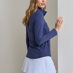 A soft, quiet performance fabric anchors this windproof jacket, with an inset rib-knit at the sides for a feminine shape and added flexibility. Designed to move freely on the course, and styled for versatility, it's an easy-to-pair option perfect for breezy days.
