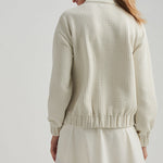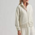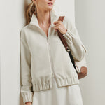 An easygoing layer you'll want to live in every day, this pullover is made from a sublimely soft stretch jersey fabric with a jacquard knit pattern for added texture. Dolman sleeves that angle toward the waist shape a flattering fit, while pintuck gathers at the cuff create a clean finishing detail. Finished with a two-way zipper, it's the perfect grab-and-go piece.