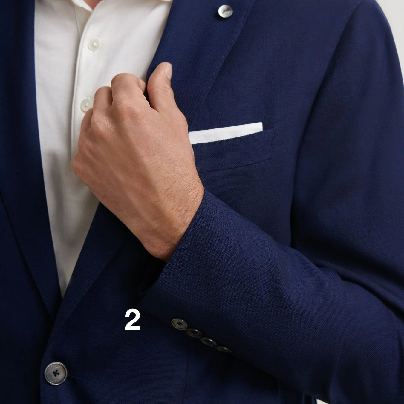 Model is 6’2”, 190 pounds, wearing a size 40R soft jacket and 34 waist