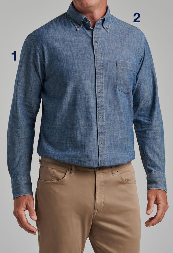 Model is 6’2”, 190 pounds, wearing a size medium top and 34 waist