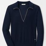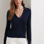 The Corinne is made from soft, fine gauge jersey knit lyocell-cashmere for an especially luxurious feel. Designed a stylish pointed Riviera collar and a classic fit to fall at the waist, with subtle tipping for a chic detail.