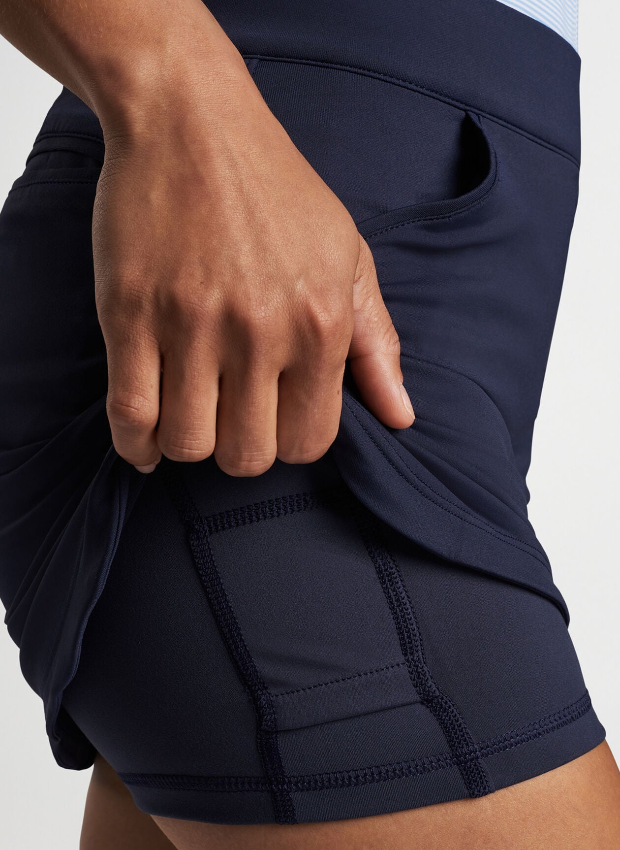 The Alice Petal Hem Skort is made from a two-yarn, moisture-wicking fabric to keep you cool and comfortable on the course. The fabric provides ideal performance benefits like four-way stretch and UPF 50+ sun protection. Finished with quarter-top pockets, an attached shortie and a petal hem for an elegant appearance and ideal coverage