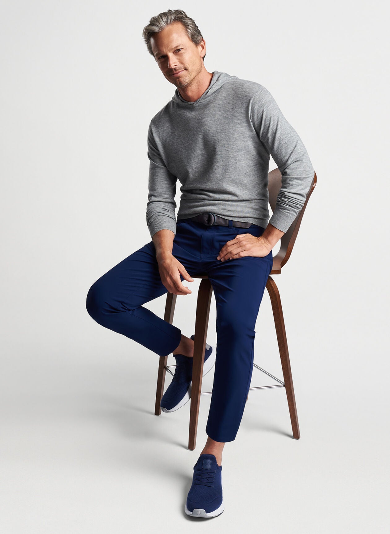 This elevated hoodie blends casual style and refined luxury. It features the exceptional softness and natural performance of 16.5 micron Merino wool, only a single micron away from luxury-classed cashmere. The Merino is combined with a core performance yarn for ideal stretch mobility and shape retention. Lightweight, endlessly versatile and perfect for travel.