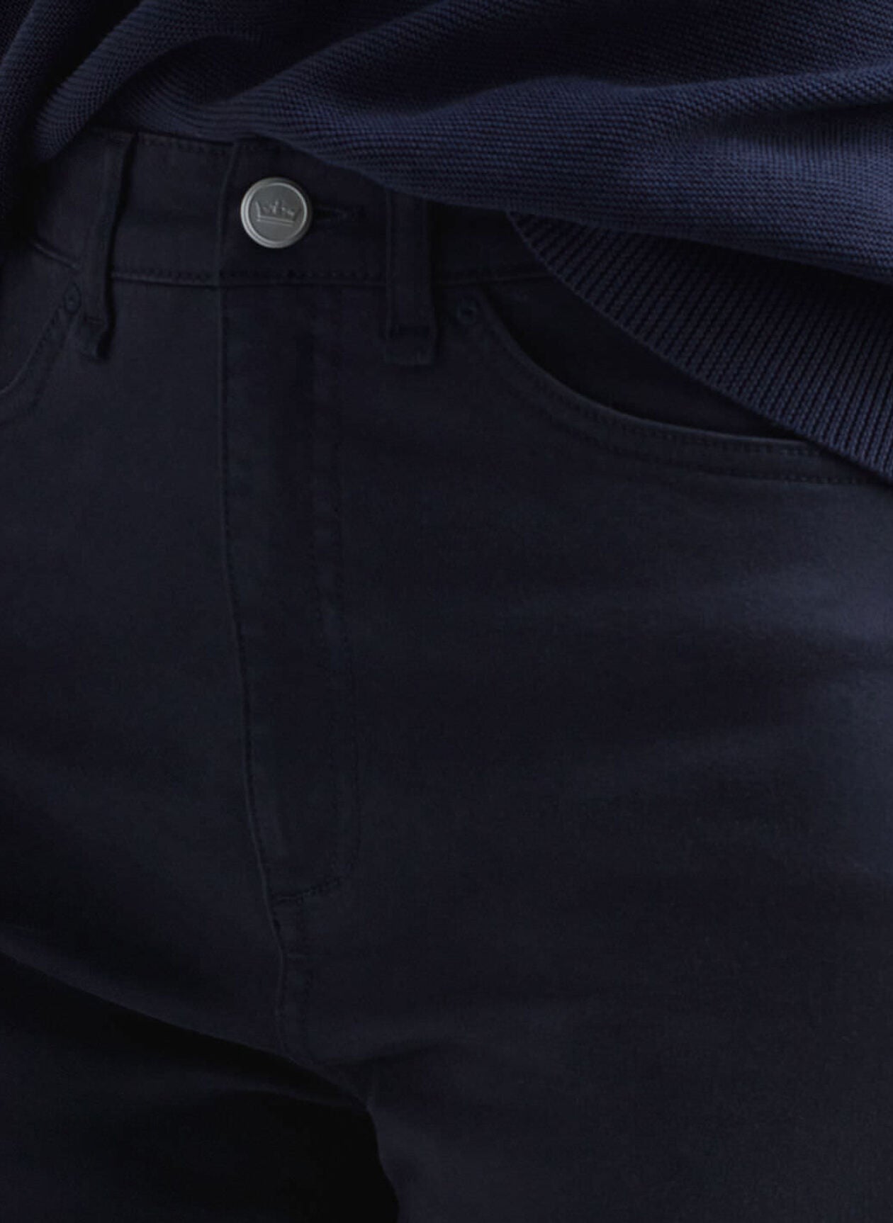 Cut from a luxurious cotton-twill blend fabric, these pants deliver two-way stretch and an exceptional softness for optimal comfort-on-the-go. They sit comfortable just above the waistline and offer gentle contouring throughout the leg to provide and elegant silhouette. Finished with side pockets and a notched ankle hem. Pair them with a Peter Millar polo shirt for a complete look.
