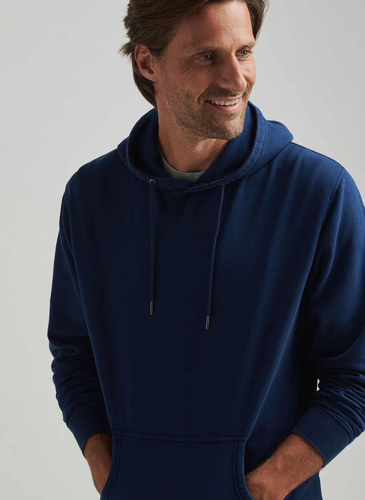 Designed to echo the familiar feel of a well-worn favourite, this hoodie is knit from our super-soft cotton-modal blend with a hint of stretch for all-day comfort. It features a fleeced interior and is finished with a front pouch pocket and banded cuffs and hem.