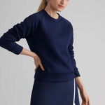This performance crewneck features an innovative Japanese fabric in a dynamic course-ready style. Lofty, lightweight, warm and breathable, the four-layer stretch fabric is both technical and comfortable. Designed with a more open fit than the full-zip, with vented sleeves that can be flipped up or pushed up the forearm.