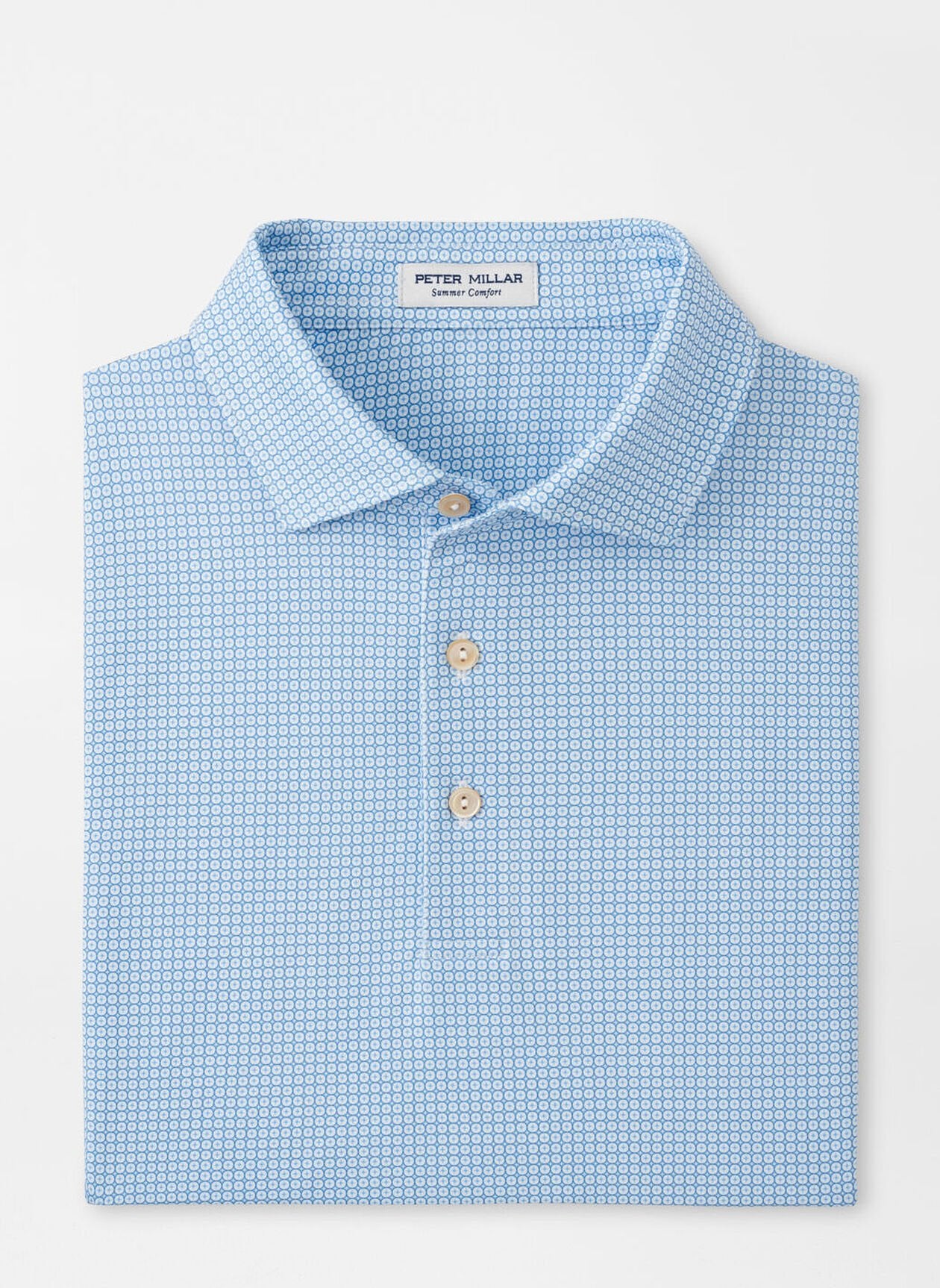 Summer is all the time in our performance jersey polos. These are packed with four-way stretch, wicking and UPF 50+ protection in our signature Summer Comfort fabrication. This polo features a custom-designed geometric print. Finished with a spread collar and three-button placket.