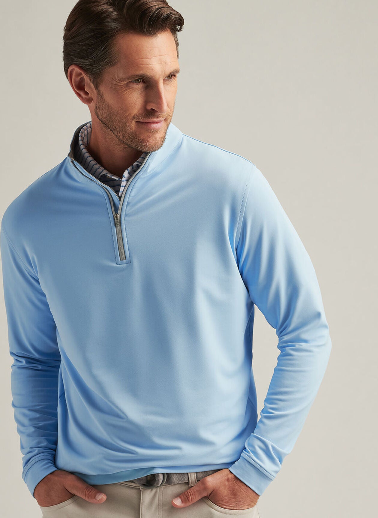 This iconic quarter-zip delivers a performance-focused twist on a classic style. It offers four-way stretch, moisture-wicking and easy-care benefits to keep you comfortable far beyond the final green. It’s finished with a mock collar and banded cuffs and hem.