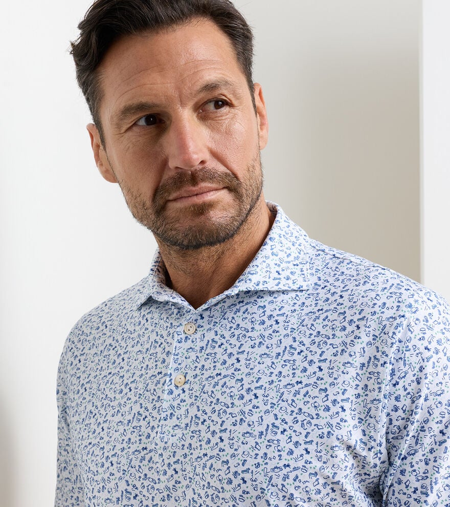 Our Summer Comfort jersey polos are gold standards for softness and exceptional performance. These are packed with four-way stretch, wicking and UPF 50+ protection in our signature fabrication. This shirt features a custom-designed print for added style. Finished with a spread collar and three-button placket.